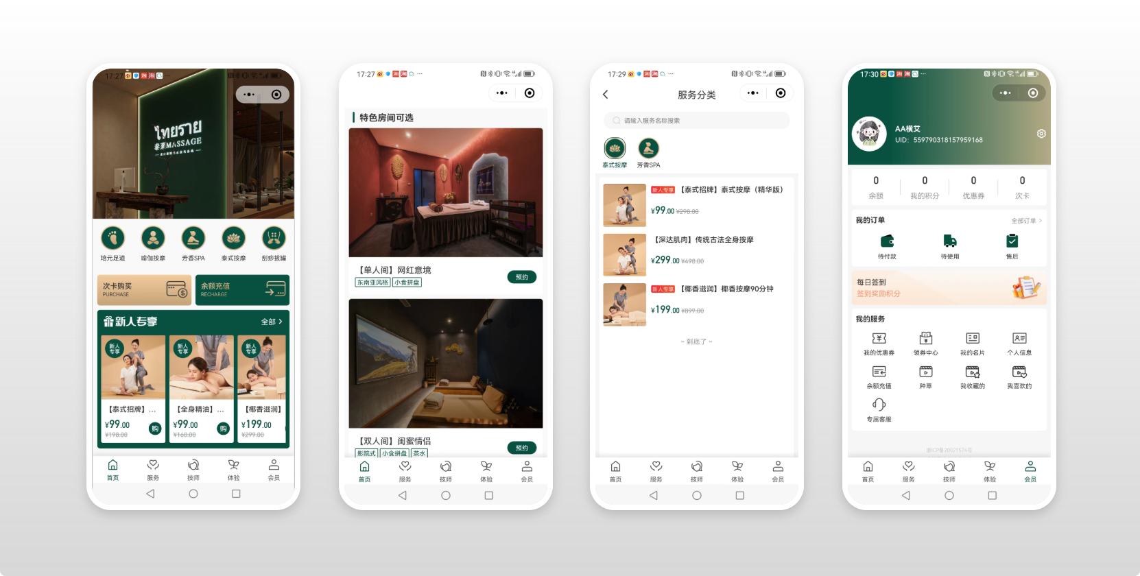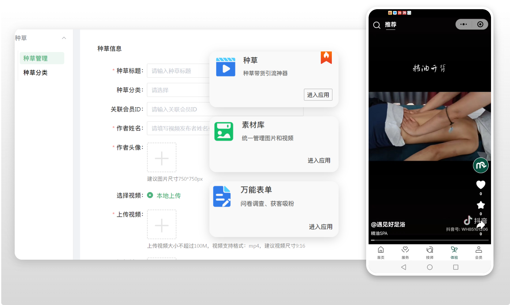 商家可通过洗浴门店小程序全民推广和短视频种草营销,利用店铺优惠券/积分等奖励刺激已有人脉圈进行多渠道的私域裂变,还有拼团活动,也能够实现快速裂变拓客,同时员工还有专属分销码进行分销,推广多则业绩高。